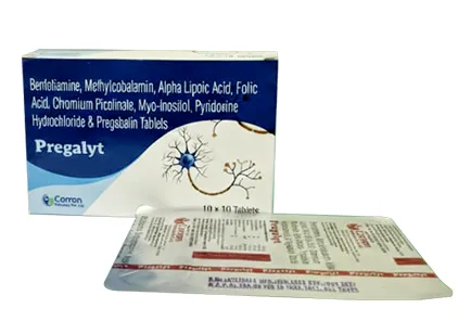 Benfotiamine 200mg, Methylcobalamine 1500mcg, ALA 200mcg, Folic Acid 1.5mg, Chromium Picolinate 200mcg, Myo-inositol 100mg, Pyridoxine HCI 75mg, Pregabalin 75mg Tablets